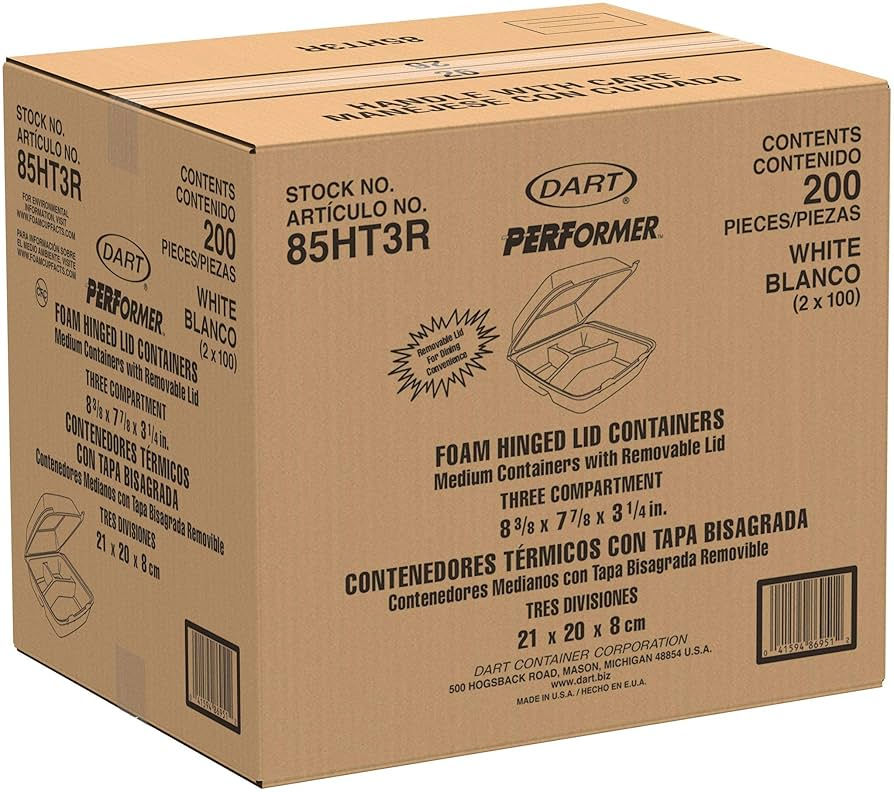 Dart 3-Compartment Medium Carryout Containers – 100 Ct (85HT3R)